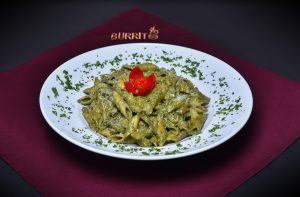 سینه مرغ، قارچ، سیر،پنیر پارمیسان، جعفری و ریحان، سس آلفردو